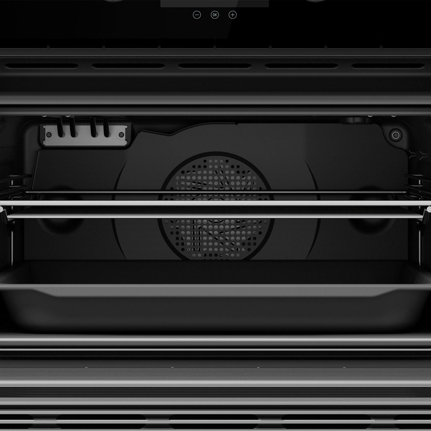 Horno multifunción SurroundTemp + microondas con acabado en Cristal Full Black